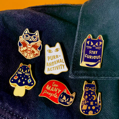 • Stay Curious Cat Book Enamel Pin Stay Curious Cat Book Enamel Pin