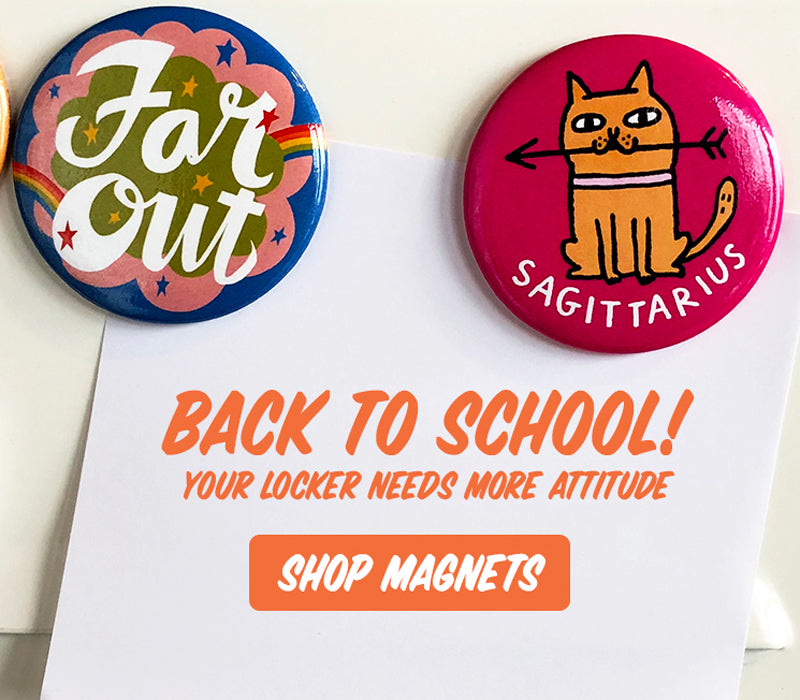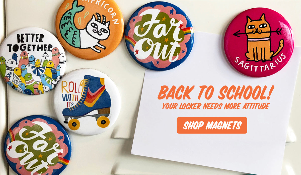 Astrology Feline Flair Books + Coffee Vintage Daydream Patches Stickers New York City New + Best Sellers Halloween Spirit Winter Holidays Love & Valentine's Button Boxes Coasters Enamel Pins Greeting Cards Jigsaw Puzzles Patches Magnet Bundles Magnets Rectangle Magnets Socks Stickers Sticker Packs Displays and Fixtures Books + Coffee Cattitude Cats (and more) Cosmic Magic Dog People Earth + Outdoor Equality + Empowerment Home + Garden Homebodies Local Love Punny Humor Wild Critters