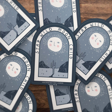 Each die cut sticker is approximately 3.25" on its longest side and made in the USA. Packaged loose in 12s.
