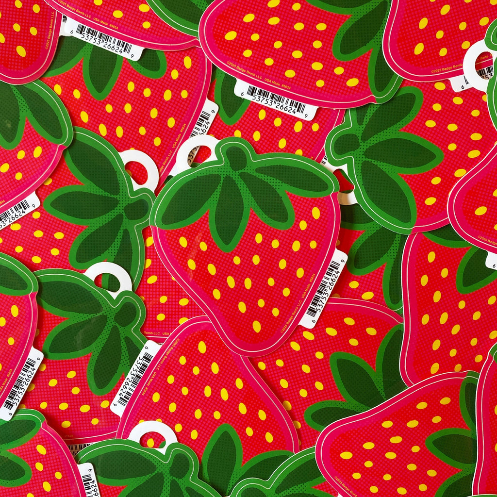 Strawberry Sticker by Badge Bomb. Nothing says summer is here like a sweet strawberry.