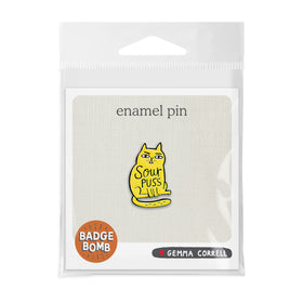 Sourpuss Cat Enamel Pin by Gemma Correll.