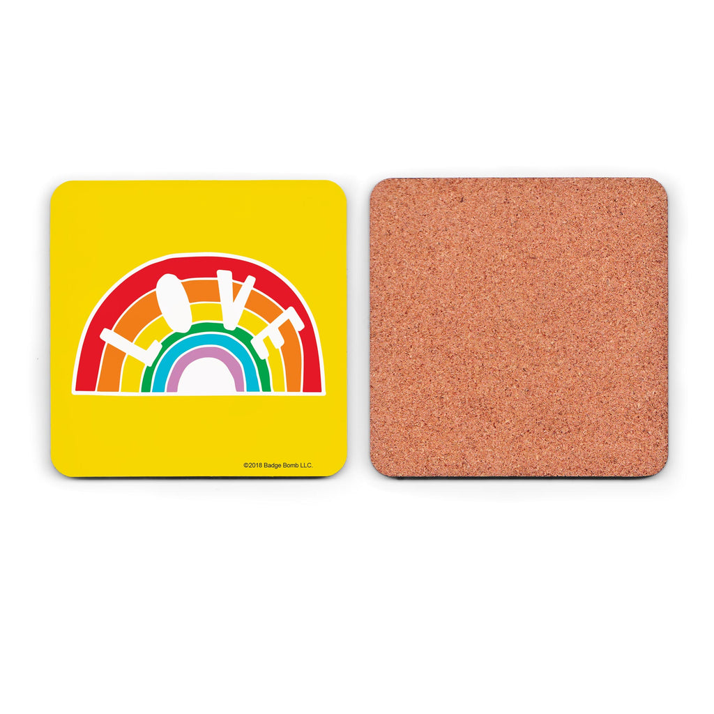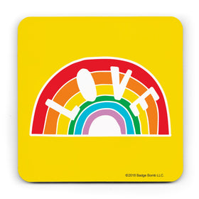 Love Rainbow Coaster by Badge Bomb.  High-quality cork-backed hardboard coasters to protect your surfaces in style.