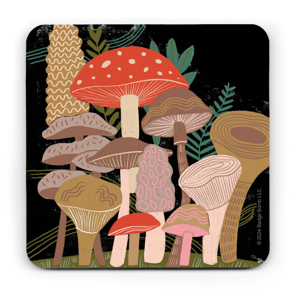 Mushroom Coaster by Badge Bomb. High-quality cork-backed hardboard coasters to protect your surfaces in style.