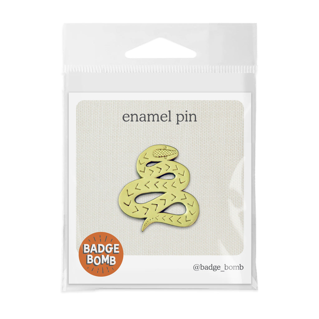 Gold Snake Enamel Pin by Badge Bomb. Ssssserious desert vibes with this snake. Don't worry, he won't bite!