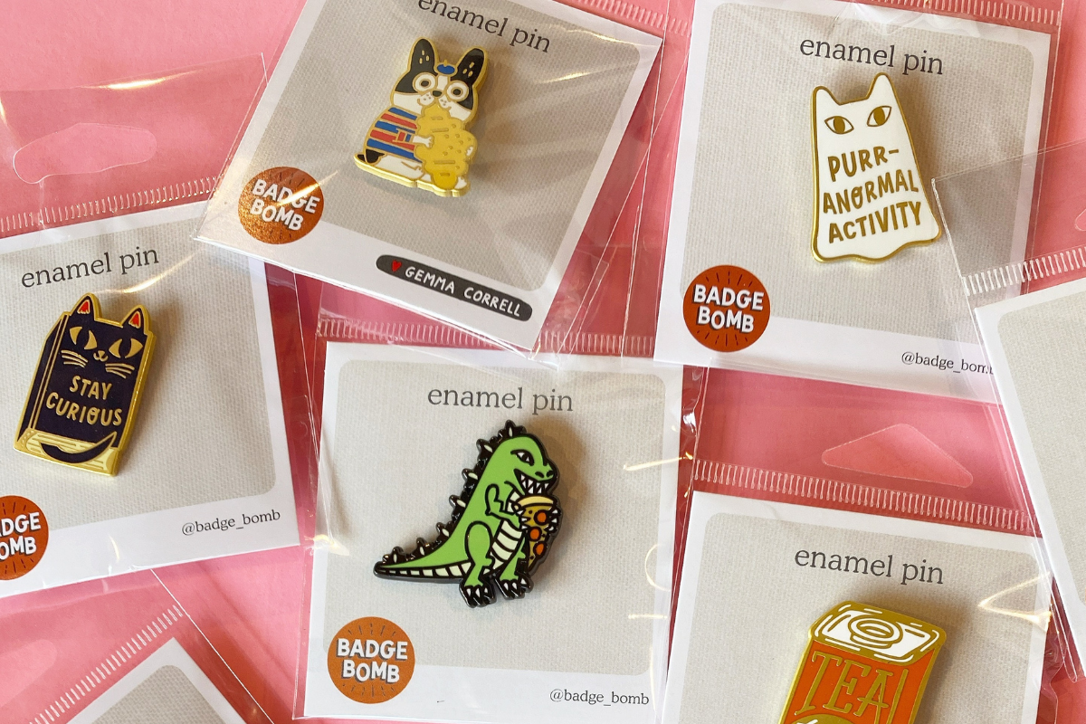Our pins are 1” - 1.5” and packaged on a paper card in a hang bag. With a butterfly clasp to close the deal, our classic pins are proof that good things come in small packages.