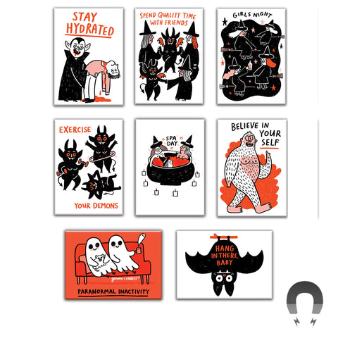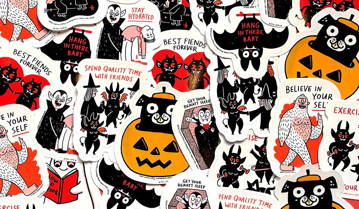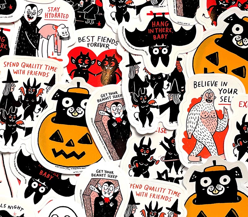 Trick-or-treaters beware! We have a hauntingly good Halloween assortment. From friendly ghosts to black cats of all temperaments, our handpicked selection of stickers, magnets, and more adds some spooky charm to any store for any time of year, but especially Halloween.