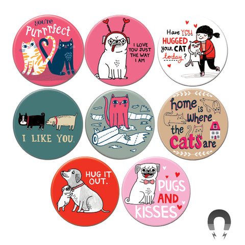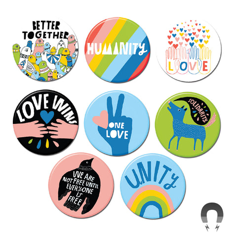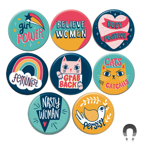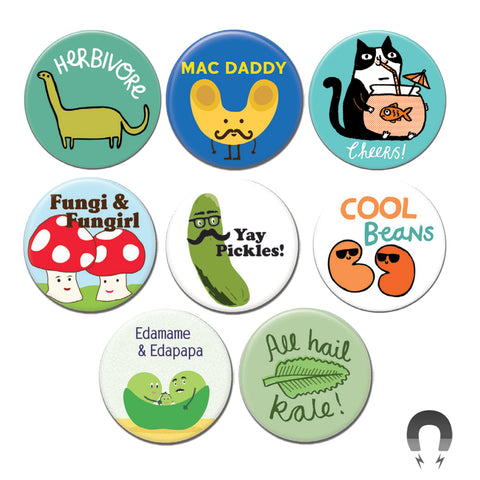 Too many magnets, too little time. Badge Bomb's pre-assorted magnet bundles are the button boxes of magnets. Make stocking your shop easyand efficient and save 10% while you're at it. Each awesome bundle includes 60 magnets assorted by our popular themes.