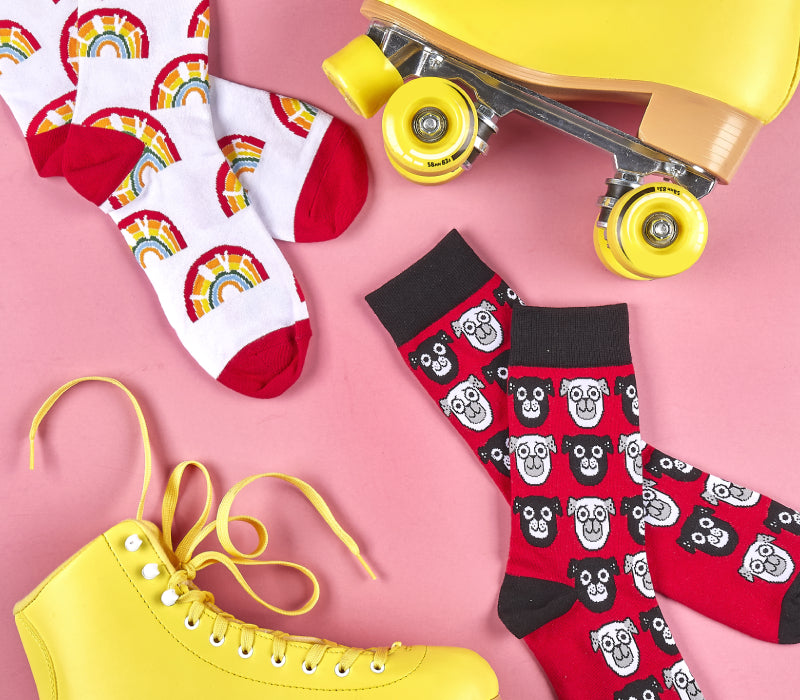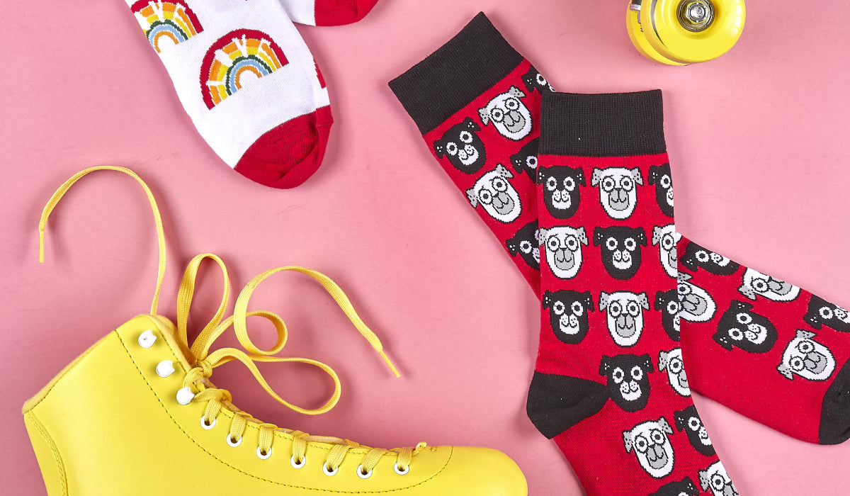 These are the socks your feet have been waiting for! Badge Bomb socks feature a cotton blend (80% Cotton, 15% Nylon, 5% spandex). Designed by Gemma Correll and other Badge Bomb artists, they make a fun addition for any sock aficionado. Unisex sizing, one size fits most.