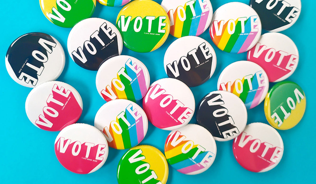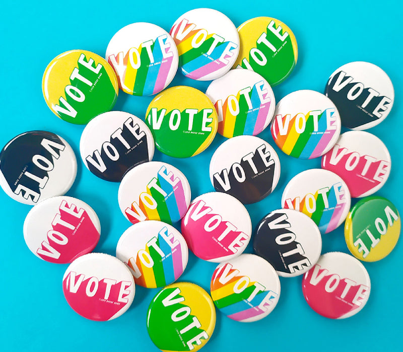 Spread the word with new USA Made voting buttons & magnets & stickers by Badge Bomb!