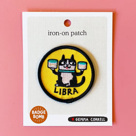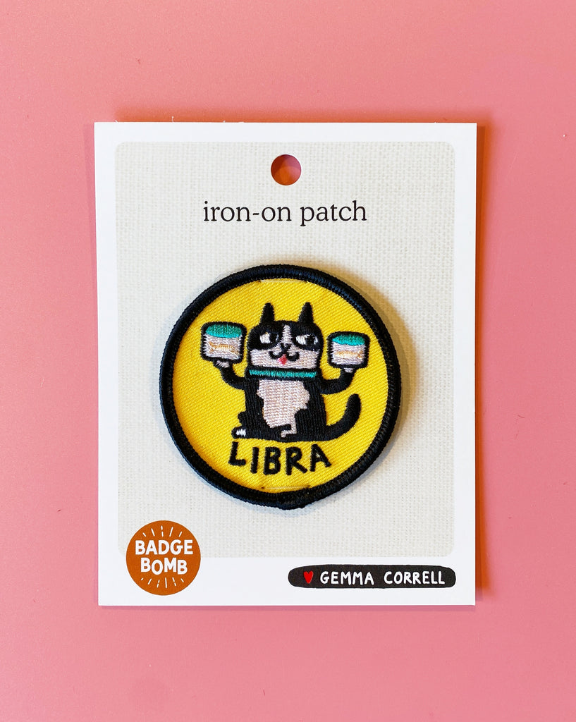 Libra Catstrology Cat Patch by Gemma Correll. Don't miss all the other zodiac signs illustrated for cat lovers.