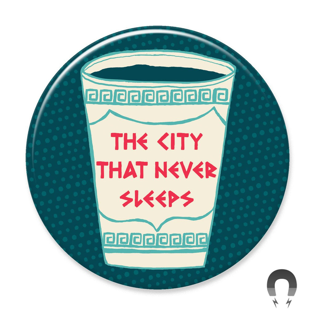 New York: The City That Never Sleeps Greek Coffee Big Magnet by Allison Cole.