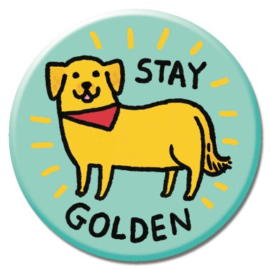 1.25" Stay Golden button by Gemma Correll! See more buttons like this!